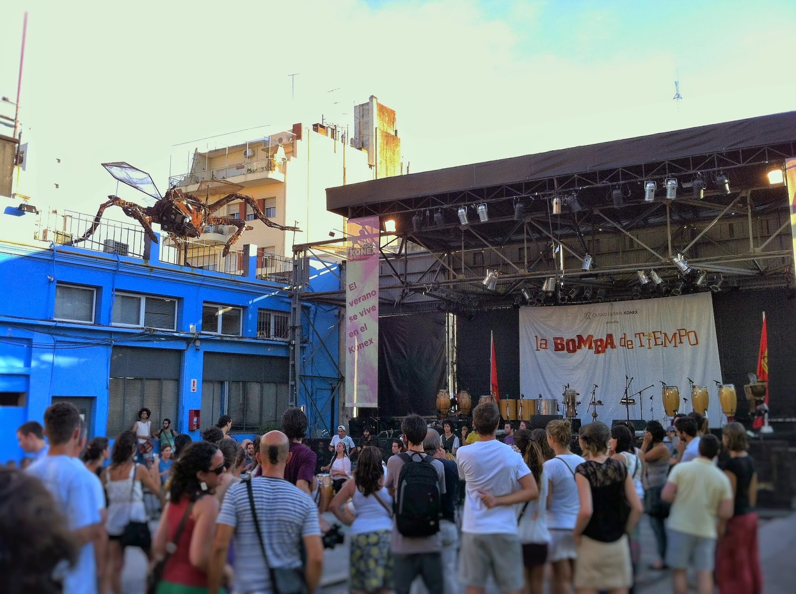 No fim da tarde, aproveitei o clima quente do verão para curtir uma baladinha que considero imperdível para quem passa por lá e gosta de lugares descolados: o Ciudad Cultural Konex. Trata-se de um centro cultural onde todas as segundas-feiras é appresentado às 19h um espetáculo de percussão chamado La Bomba de Tiempo. A apresentação deles é sensacional!