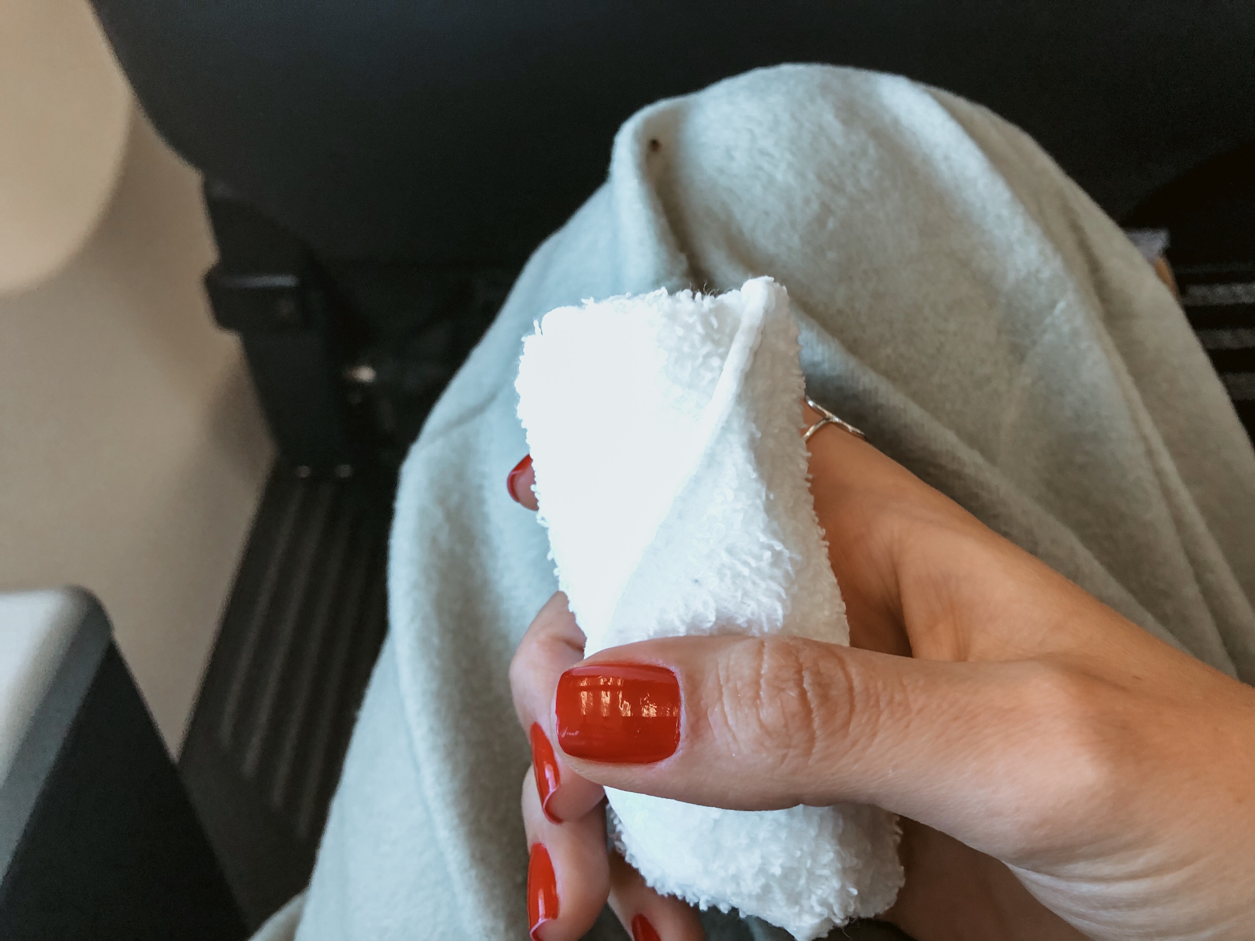 Há um atendimento exclusivo de serviço de bordo, onde foram oferecidos água na chegada, toalha úmida aquecida para limpar as mãos e café da manhã, sendo este último com duas opções: ovos ou crepe de maçã. Escolhi o crepe de maçã, que estava uma delicia, acompanhado de um pão preto com manteiga, iogurte sem gordura, café e água (a bebida também podia ser escolhida).