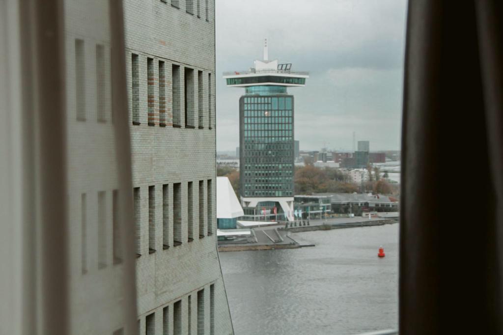 Nós passamos duas noites na Suíte Júnior King, número 1101, com uma vista fantástica do Rio IJ e do Adam Lookout, o mais alto balanço da Europa.