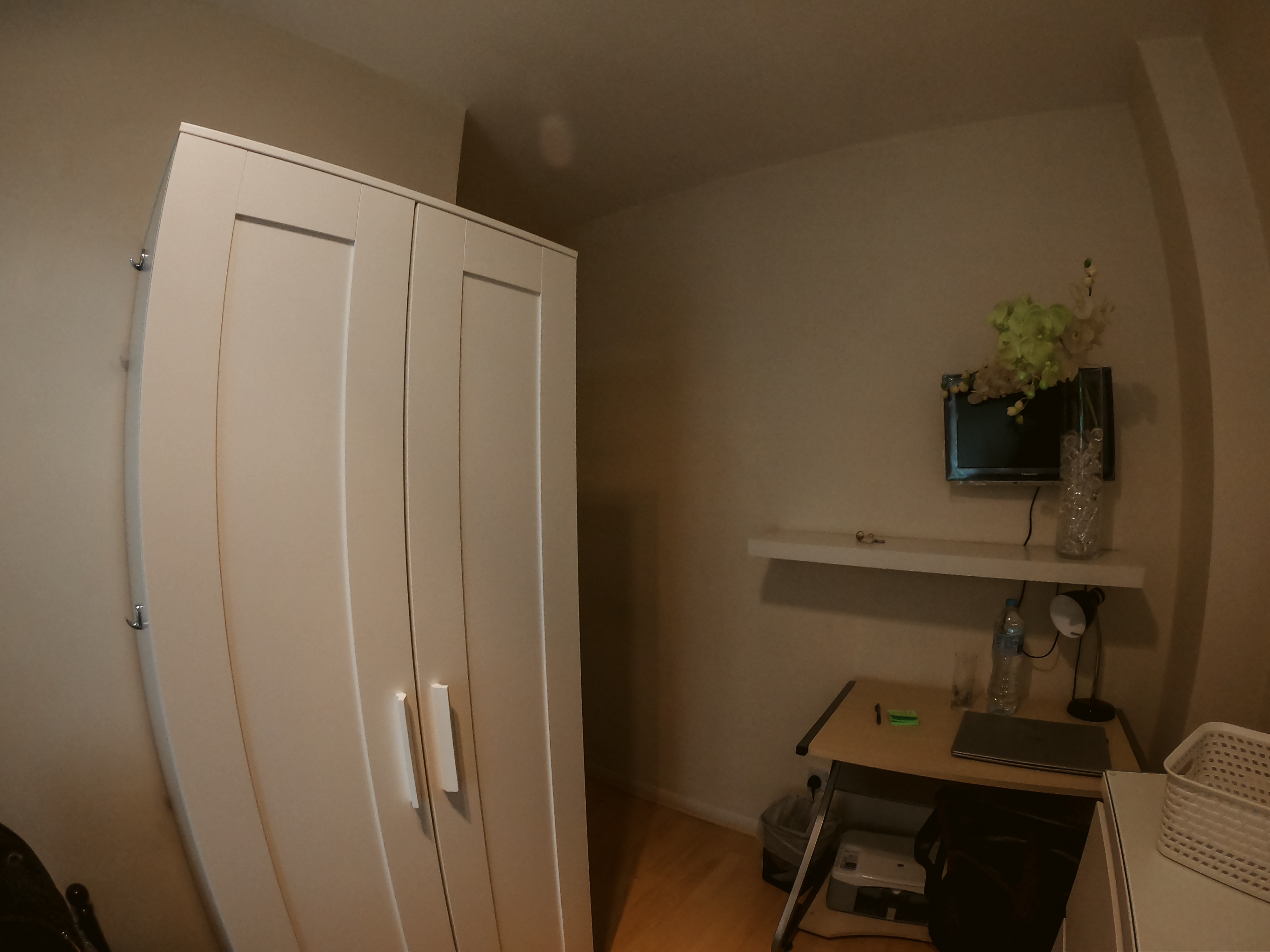 Em casa, eu tinha um quarto só para mim, que contava com armário, cômoda, cama, mesa e cadeira. Excelente para guardar todas as minhas coisas, dormir confortável e estudar.