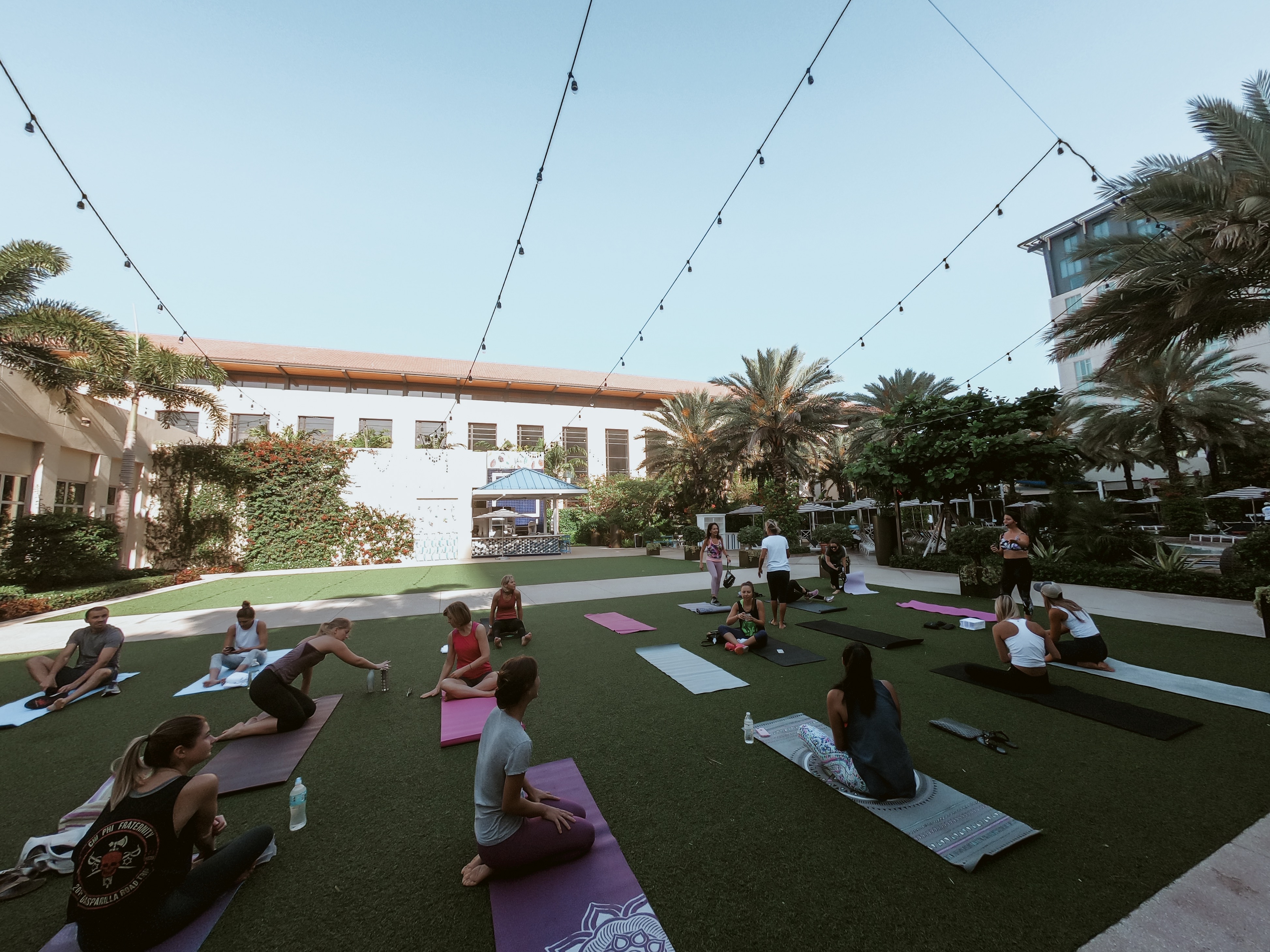 - Último e já saudoso dia, acordamos com a energia lá em cima e fazendo aula de Pilates no hotel Hilton West Palm Beach. Todo sábado pela manhã, é oferecida aula gratuita para hóspedes e não hóspedes. Foi uma experiência maravilhosa e já garantiu a energia do dia.