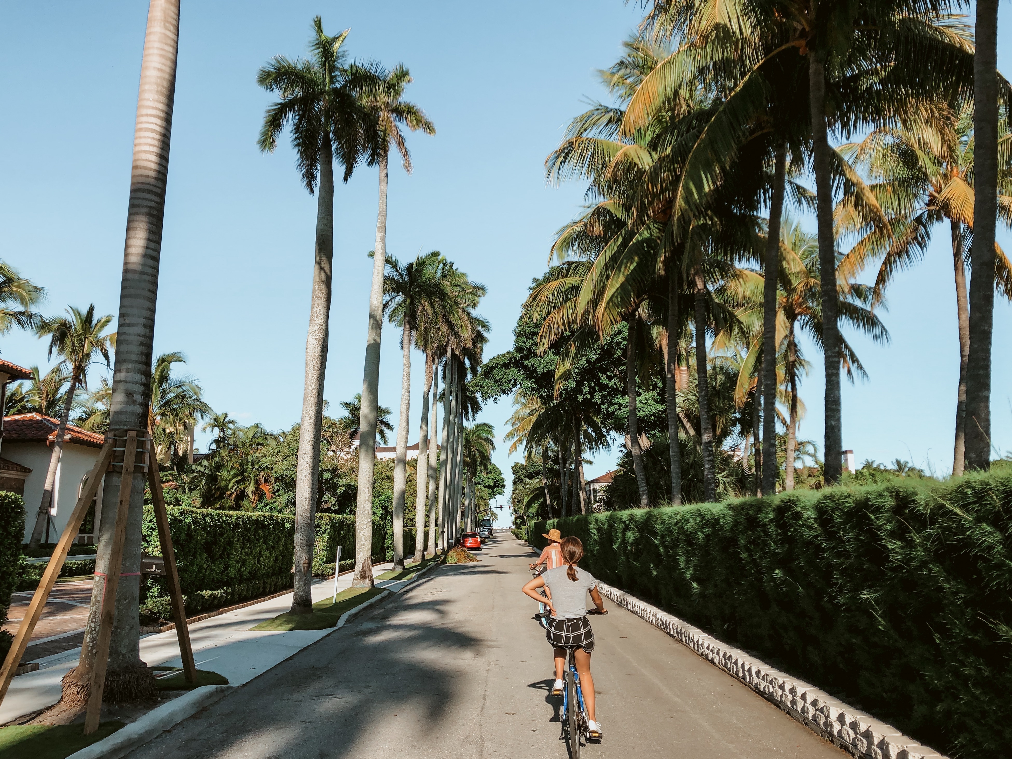 - Na parte da tarde do dia, fomos conhecer a famosa Ilha de Palm Beach (5 minutos de carro do hotel) com suas belas mansões e incríveis histórias. A melhor forma de conhecer sem dúvidas é pedalando pela ilha. Para isso, alugamos uma bicicleta no Palm Beach Bicycle Trail Shop e, para uma experiência mais completa e com detalhes enriquecedores sobre a história local, fomos acompanhados da guia Leslie Diver da Island Living Tours, que faz diversos passeios guiados pela Ilha de Palm Beach.